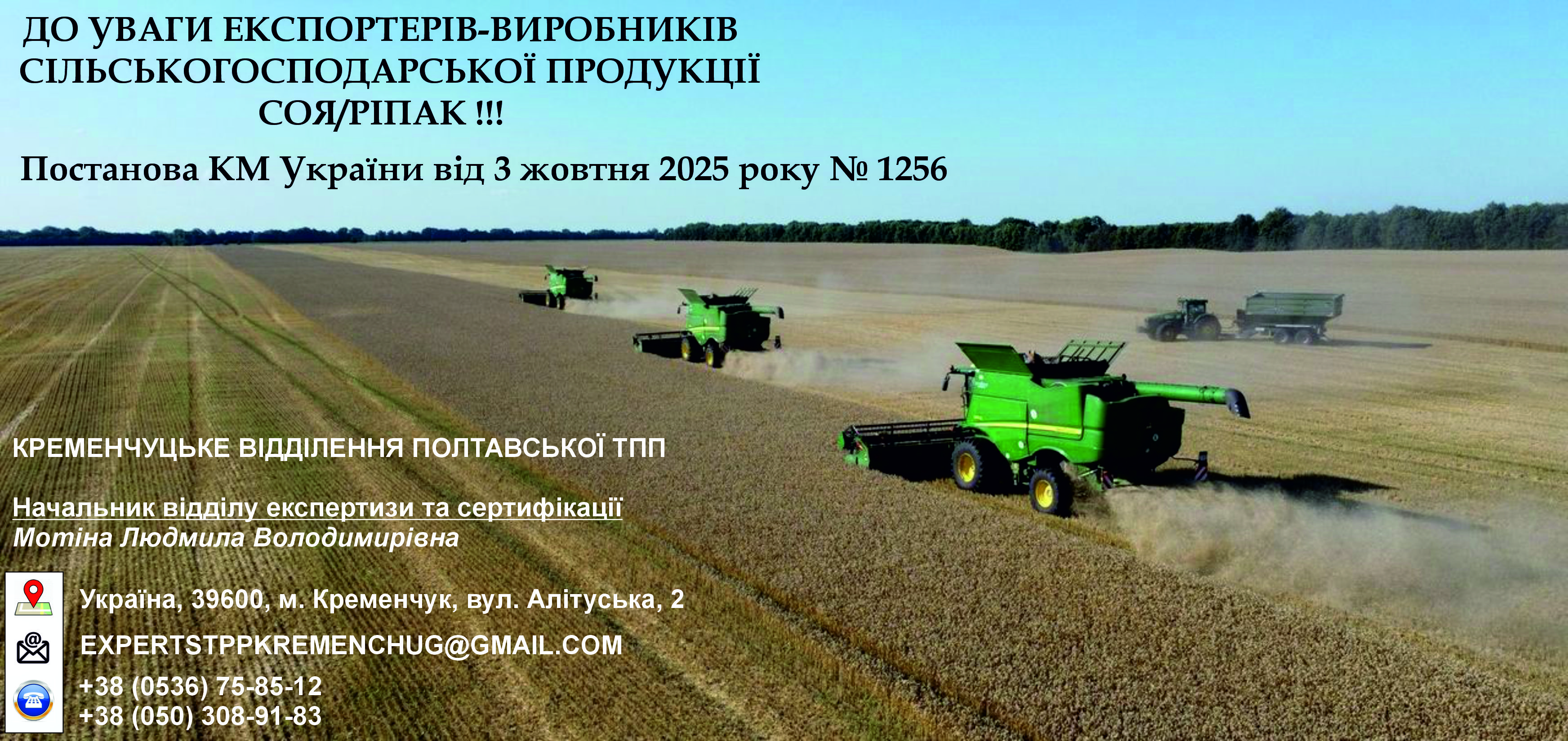 ДО УВАГИ ЕКСПОРТЕРІВ-ВИРОБНИКІВ СІЛЬСЬКОГОСПОДАРСЬКОЇ ПРОДУКЦІЇ СОЯ/РІПАК!