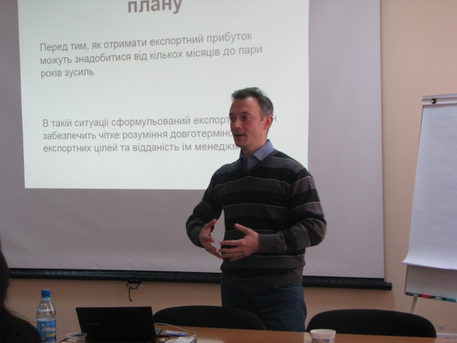 Семінар проводив Олег Мирошніченко - експерт ДП "Держзовнішінформ", спеціаліст з питань торгівлі Представництва ЄС в Україні 2010-2013 р.р., відібраний тренер по експорту Американської агенції з міжнародного розвитку (USAID), автор двох популярних книг для українських експортерів.