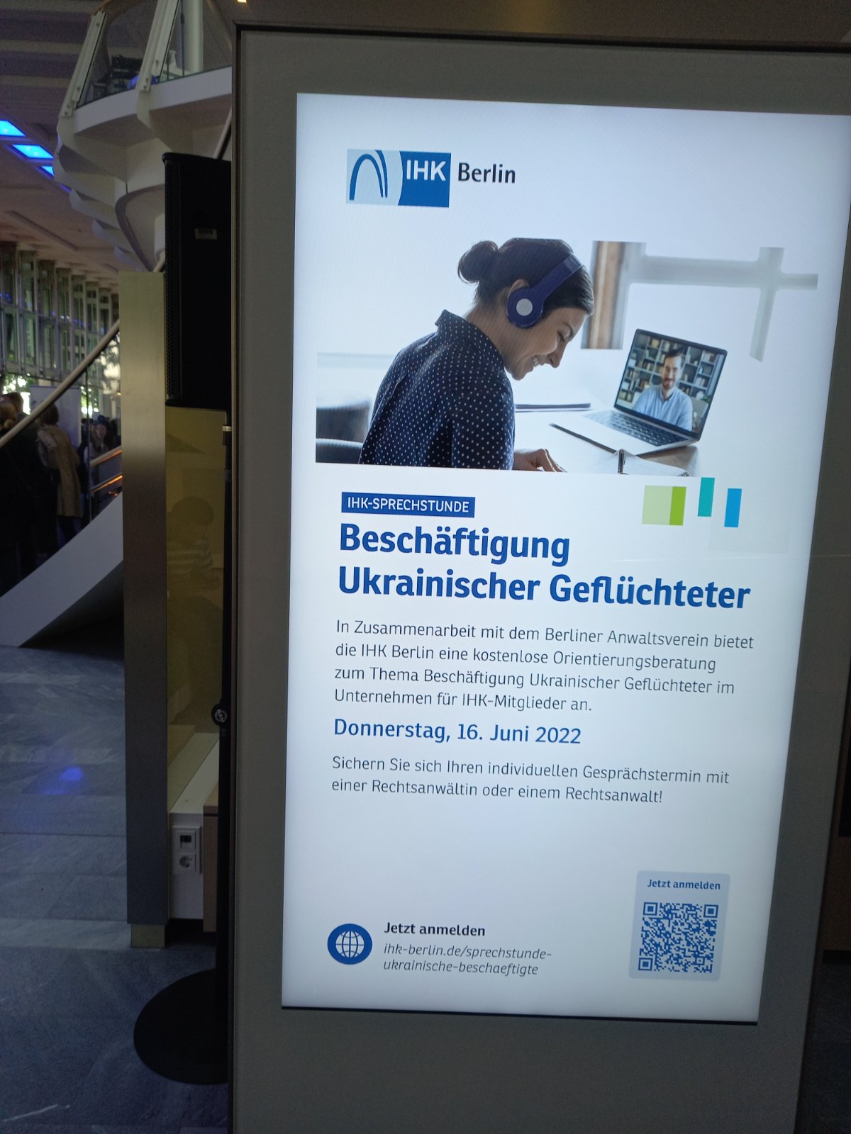 Директор Кременчуцького відділення Полтавської ТПП Лариса Михайлик відвідала Берлінську ТПП(IHK Berlin) де проводилась ярмарка вакансій для українських біженців. Відбулися зустрічі із з Президентом Daniel-Jan Girl та Головою правління AHK(Німецько-Українська промислова-торговельна палата) Александер Маркус.
