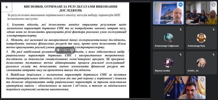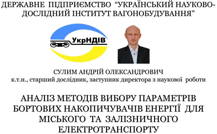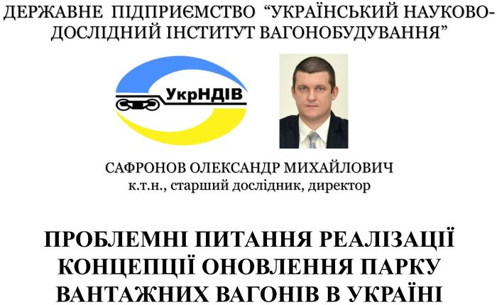 Запропонували свої доповіді та виступили О. М. Сафронов, директор ДП «УкрНДІВ» на тему «Проблемні питання реалізації концепції оновлення парку вантажних вагонів в Україні; В.В. Никифоров, перший проректор Кременчуцького національного університету імені М. Остроградського з темою «Науково-технiчнi прiоритети Кременчуцького нацiонального унiверситету iменi Михайла Остроградського в умовах евроiнтеграцiї України»; А. О. Сулим, заступник директора ДП «УкрНДІВ» з темою «Аналіз методів вибору параметрів бортових накопичувачів енергії для міського та залізничного електротранспорту».