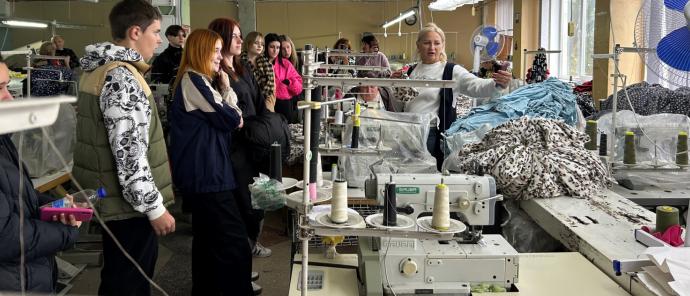 Студенти відвідали розкрійний та швейний цехи, готову продукції. Вони побачили, як створюється одяг — від перших етапів до готового виробу. Особливе враження справило сучасне обладнання та європейські стандарти якості, за якими працює підприємство.