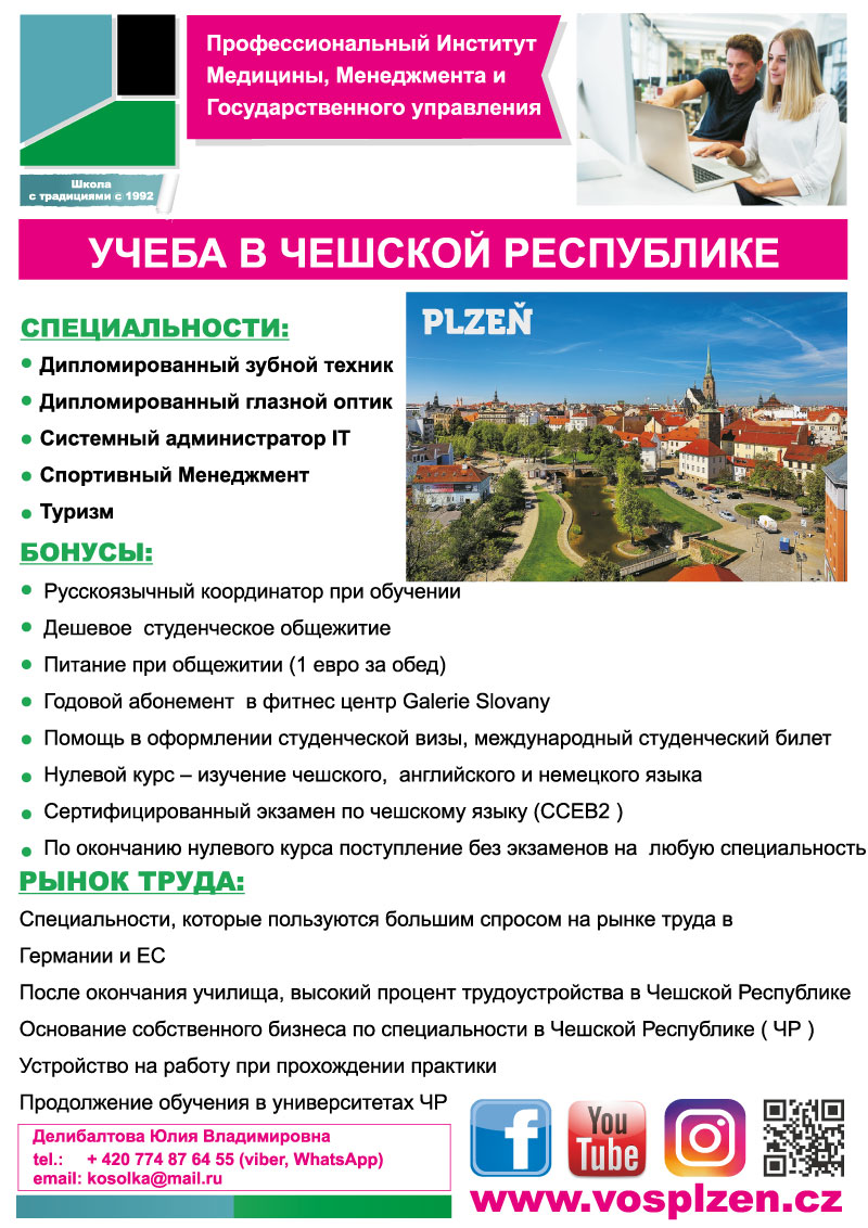 Приглашаем Вас на учебу в город Пльзень (Чехия) по специальностям: